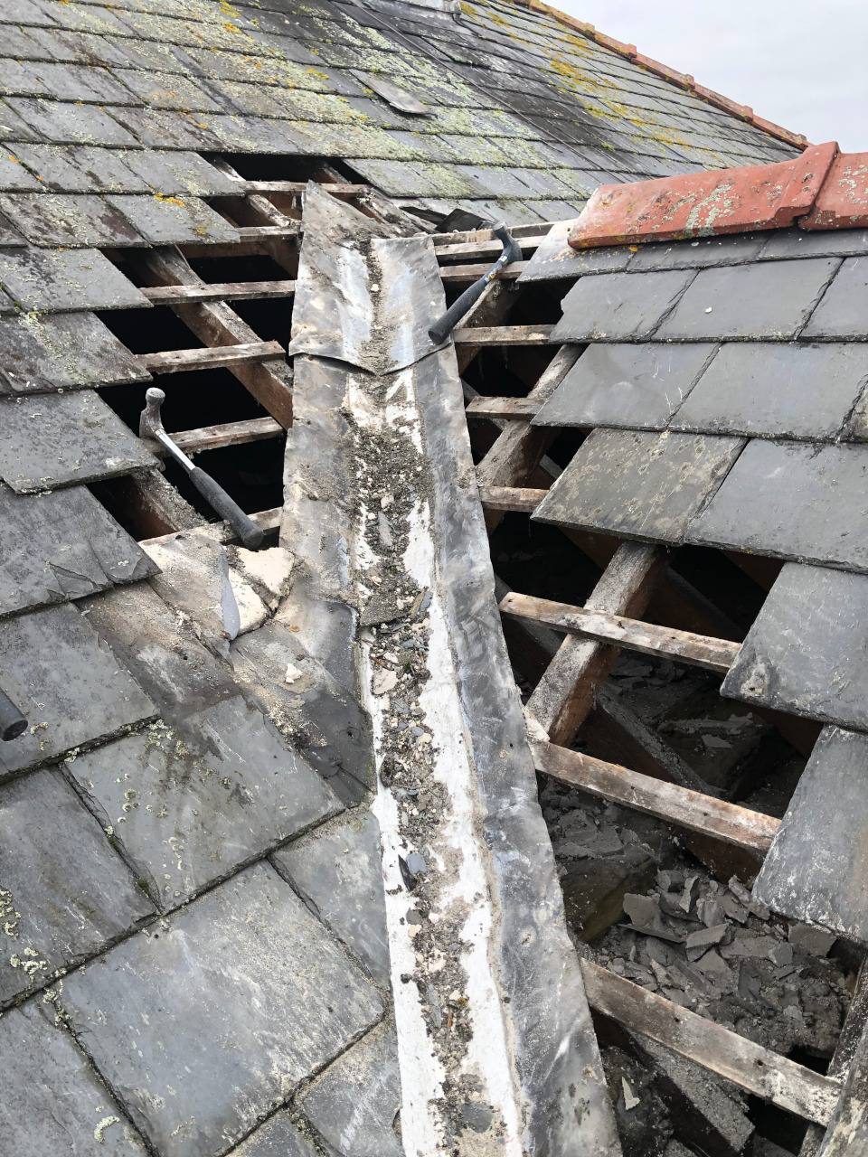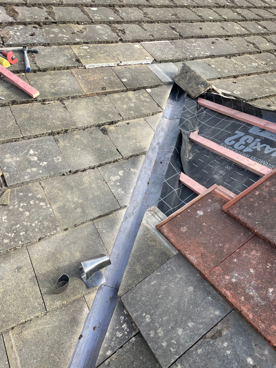 Repairs to the valley necessitate removal and then re-fixing of tiles either side of the valley in order to lap the leadwork under the adjacent tiles. In extreme cases the replacement of the timber or plywood valley board supporting the lead is necessary.