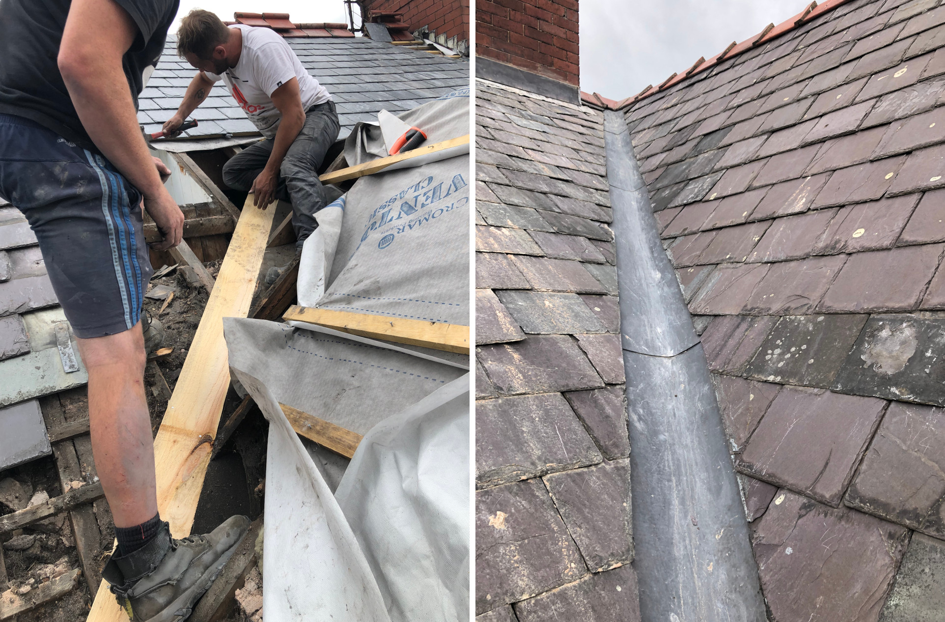 Repairs to the valley necessitate removal and then re-fixing of tiles either side of the valley in order to lap the leadwork under the adjacent tiles. In extreme cases the replacement of the timber or plywood valley board supporting the lead is necessary.